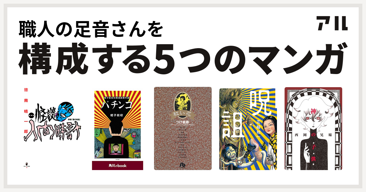職人の足音さんを構成するマンガは復刻版 怪談人間時計 パチンコ 蛭子能収初期漫画傑作選 紅い花 呪詛 神の子供 私を構成する5つのマンガ アル